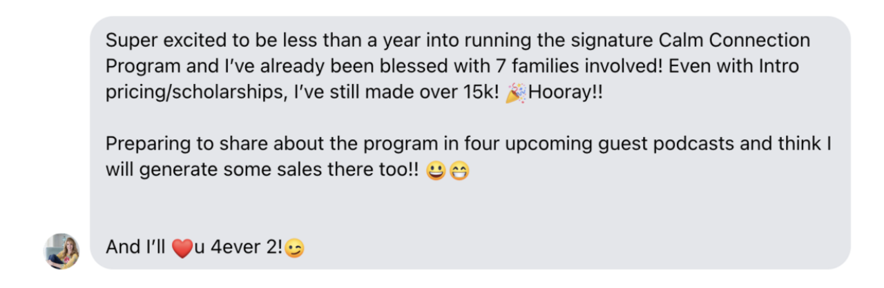 That next year I turned away over 250 inquiries and $20k months so I could build my online programs and teach other women how to build businesses like I did.
